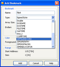 Here is an example of adding a bookmark to a ZIP file: